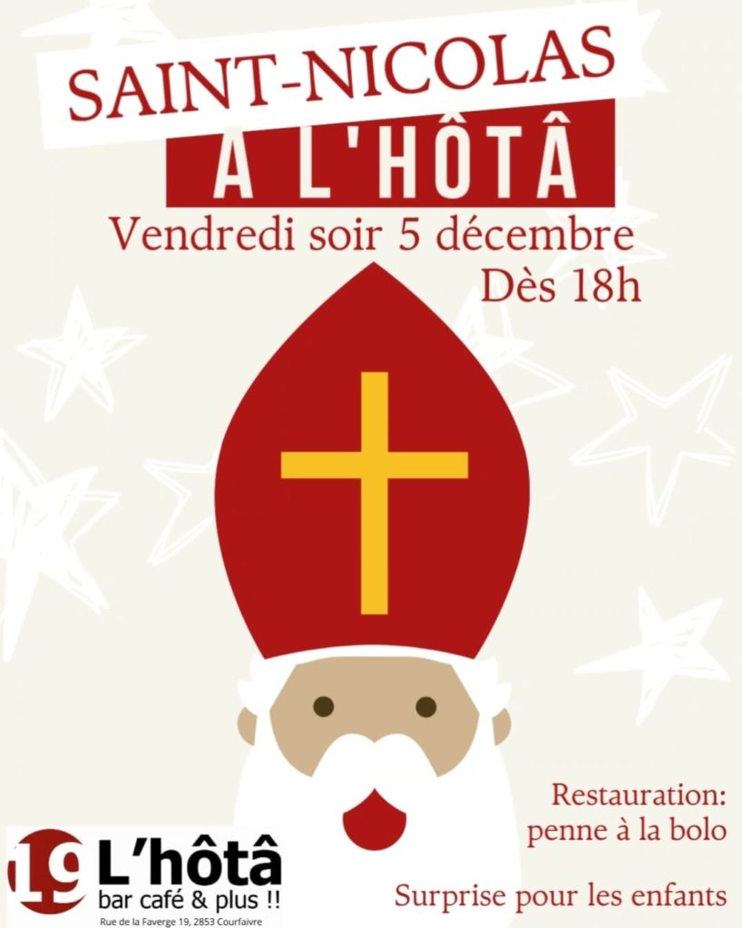 Soirée spéciale Le vendredi 5 décembre, rendez-vous pour fêter ensemble la traditionnelle soirée de la Saint-Nicolas !Au programme :Surprise pour les enfantsLes penne à la bolo du Pino pour se régaler🎅 Bien sûr la venue tant attendue de Saint-Nicolas et du Père Fouettard✨ On vous attend pour une soirée pleine de sourires, de gourmandises et de magie !